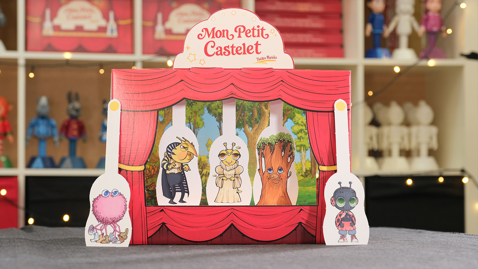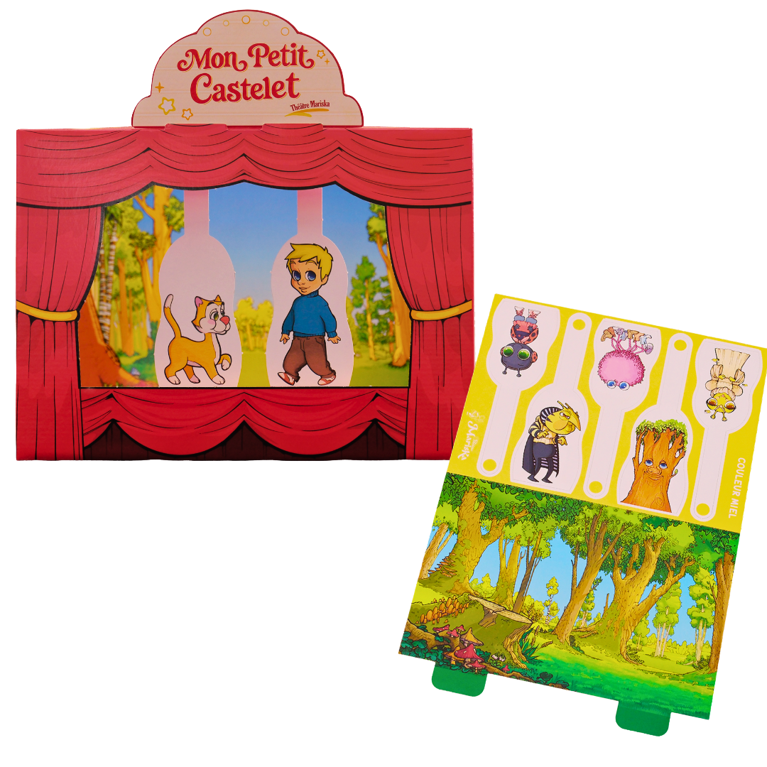 Offrez aux enfants un mini-théâtre inspiré de l’univers du Théâtre Mariska ! Ce castelet en carton se transforme en scène vivante pour donner vie aux histoires, inventer des aventures et jouer avec les héros du Théâtre Mariska, comme Petit Jean et son fidèle chat Mitsou.