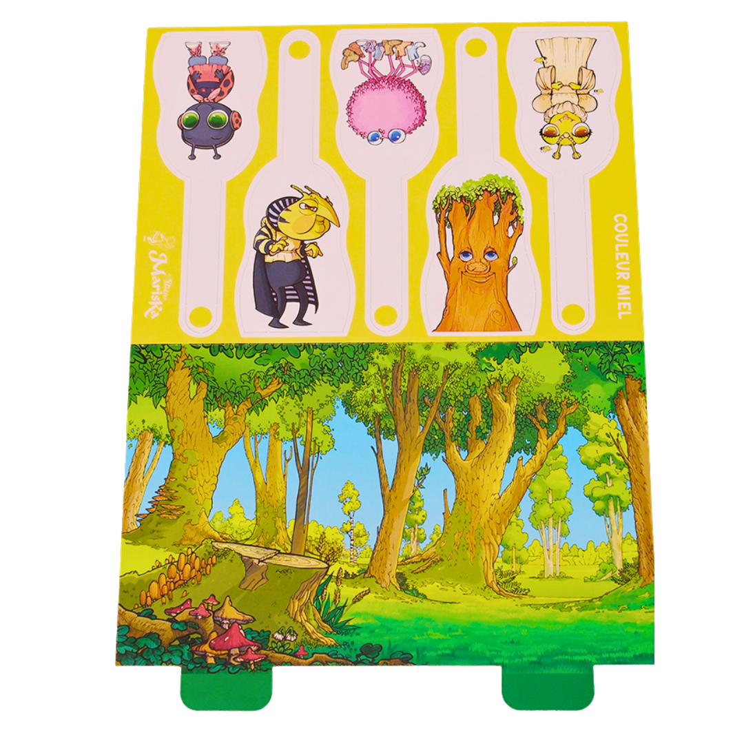 Contenu : 5 personnages et 1 décor (planche à découper) du spectacle "Couleur Miel"